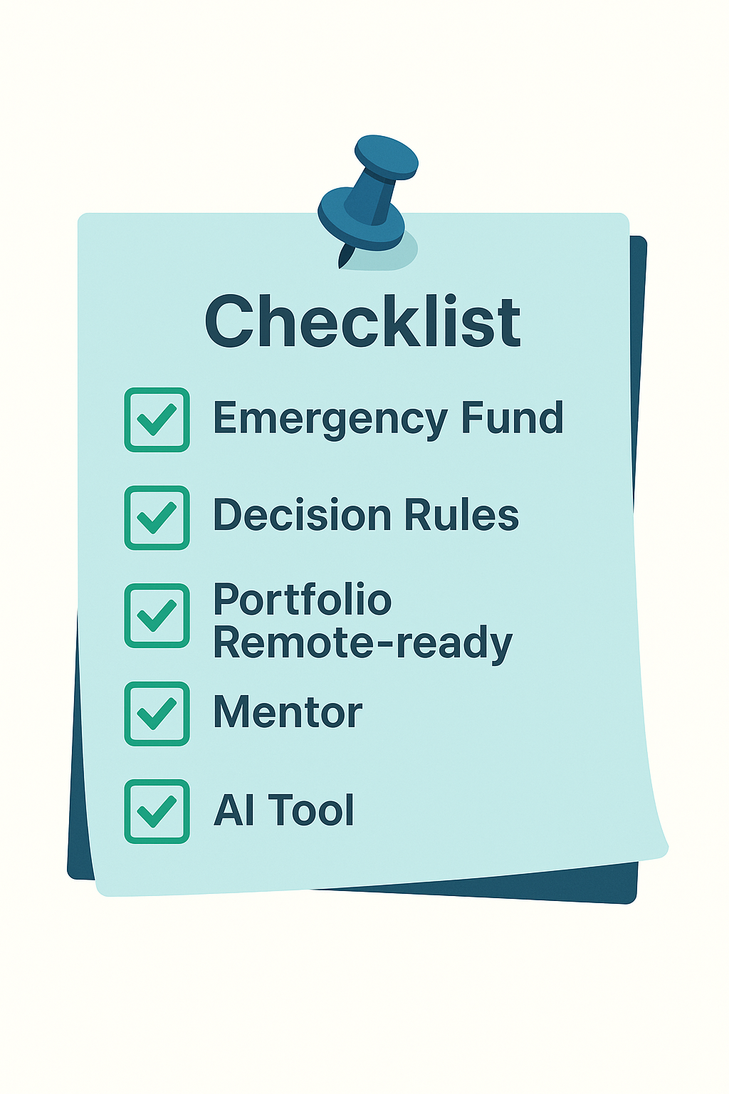 • สร้าง Career Capital: โปรเจกต์จริง, พอร์ตงาน, การอ้างอิงจากหัวหน้าหรือคลients