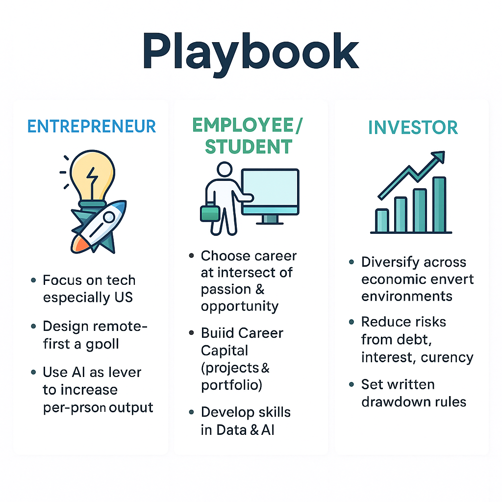 โลกกำลังเปลี่ยนผ่านตามวงจรใหญ่ หนี้ ความขัดแย้งภายใน ภูมิรัฐศาสตร์ ธรรมชาติ และเทคโนโลยี จะเร่งการคัดเลือกผู้ชนะ–ผู้แพ้ระดับบุคคลด้วย ข่าวดีคือ เราคุม “ระบบปฏิบัติการส่วนตัว” ได้เสมอ: เพิ่มความคล่องตัว สร้างวินัยการเงิน ลงทุนในทักษะและชุมชน และทบทวนตนเองอย่างซื่อสัตย์